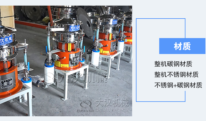 因為氣體保護振動篩要篩分的物料多為化學用品,含有一定的腐蝕性,所以大漢機械更推薦您使用不休材質氣體保護振動篩對其進行篩分。