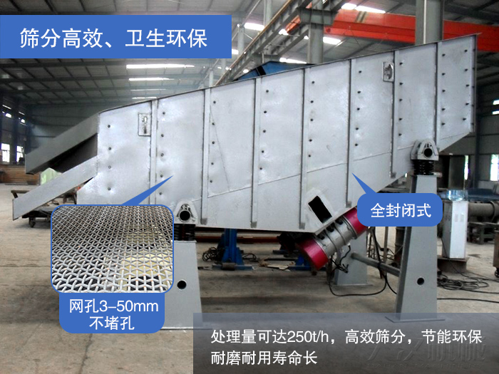 YK系列的振動(dòng)篩的網(wǎng)孔一般在3-50mm之間,處理量可達(dá)250t/h,保證高效篩分不堵孔;全封閉式解夠避免物料出現(xiàn)溢散現(xiàn)象,密封性好。同時(shí)YK系列的振動(dòng)篩采用的高強(qiáng)度的鋼材制成,耐磨耐用壽命長(zhǎng)。