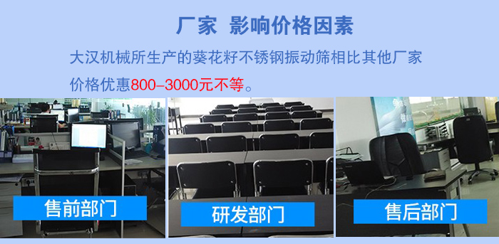 大漢機械所生產的葵花籽不銹鋼振動篩在原有的篩分工藝基礎上精益求精,不僅每一道工序自主研發(fā)、生產設計和銷售,省去了大量的外購成本和中間商環(huán)節(jié),力求成本較低化薄利多銷讓利給廣大用戶,相比其他廠家價格優(yōu)惠800-3000元不等。