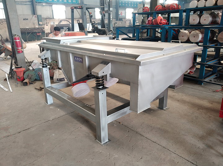 我廠生產(chǎn)的DZSF系列1035直線振動(dòng)篩是根據(jù)客戶需求特殊定做生產(chǎn)的一種新型篩分設(shè)備,該設(shè)備寬1米,長(zhǎng)度3.5米,兩層三個(gè)出料口,整機(jī)采用碳鋼材質(zhì),該客戶用1035直線振動(dòng)篩主要用與石料的分級(jí)除雜工作?,F(xiàn)在已投入生產(chǎn)使用,經(jīng)過(guò)客戶反饋使用效果不錯(cuò),上周又在我公司訂購(gòu)了四臺(tái),下面具體介紹一下1035直線振動(dòng)篩。