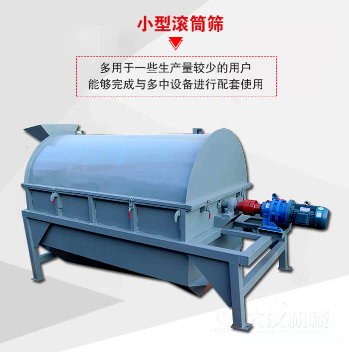 小型滾筒篩多用于一些生產(chǎn)量較少的用戶,與大型滾筒篩相比該產(chǎn)品的篩分直徑小,篩網(wǎng)面積小,驅(qū)動功率小,所以稱之為小型滾筒篩,但其改裝比較容易能夠完成與多中設(shè)備進行配套使用。