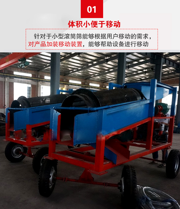 針對于小型滾筒篩能夠根據(jù)用戶移動的需求,對產(chǎn)品加裝移動裝置,能夠幫助設(shè)備進行移動,從而滿足用戶的需求。