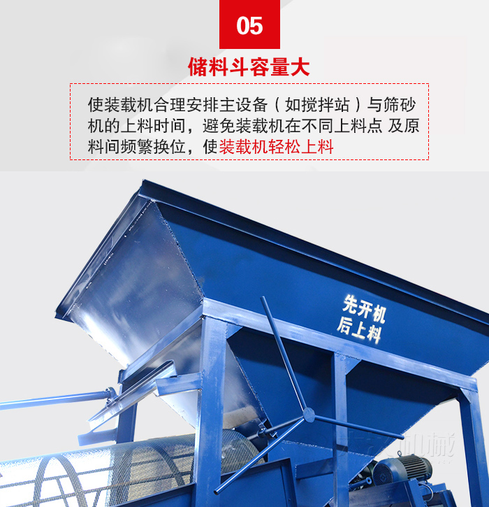 使裝載機合理安排主設(shè)備(如攪拌站)與篩砂機的上料時間,避免裝載機在不同上料點 及原料間頻繁換位,使裝載機輕松上料,降低勞動強度。