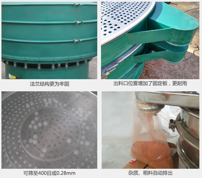4,效率高、粉類、粘液均可篩分,雜質(zhì)、粗料自動(dòng)排出。