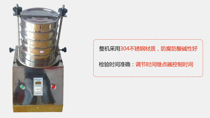 3,檢驗篩整機(jī)采用304不銹鋼材料,該材質(zhì)針對于腐蝕酸堿物料的篩分并能保證其使用壽命。