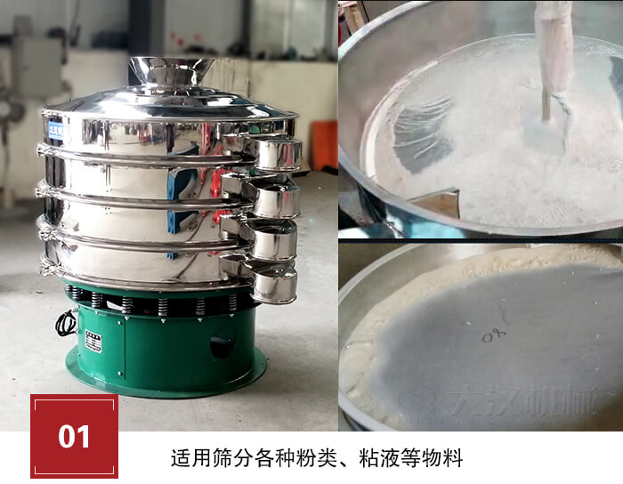 1,技術(shù)成熟,質(zhì)量可靠,篩分精度高、效率高,適用篩分各種粉類、粘液等物料;